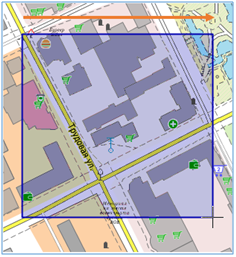 Выделение по прямоугольной рамке Для активации нанесения прямоугольной рамки необходимо нажать Shift и левую кнопку мыши и, удерживая их, начать движение мыши по диагонали. Автоматически будет формироваться область выбора в виде прямоугольника. Для окончания режима отпустить кнопку мыши. Перемещение изображения карты в данном режиме отключено.