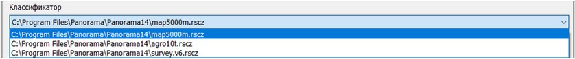 Можно редактировать классификатор открытой карты местности или один из классификаторов пользовательских карт. Имя редактируемого файла классификатора выбирается из раскрывающегося списка классификаторов при нажатии на поле Классификатор.