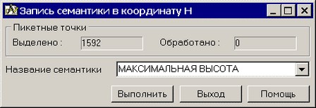 Программа автоматически запросит у объектов значение указанной пользователем семантики и поместит его в координату Н объекта. Если у объекта нет указанной семантики, то такой объект не будет обработан. Число объектов, у которых сформировано значение семантики, отображается в элементе Обработано.
