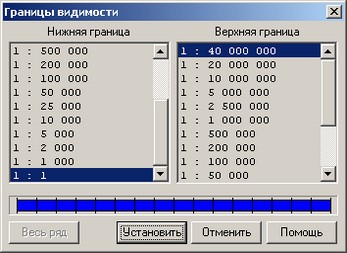 Совокупность нижней и верхней границ диапазона масштабов отображения, при которых карта (матрица, растр) будет видна, составляет границы видимости карты (матрицы, растра). Аналог режима границы видимости объекта.