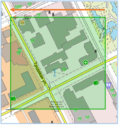 Выделение по прямоугольной рамке Для активации нанесения прямоугольной рамки необходимо нажать Shift и левую кнопку мыши и, удерживая их, начать движение мыши по диагонали. Автоматически будет формироваться область выбора в виде прямоугольника. Для окончания режима отпустить кнопку мыши. Перемещение изображения карты в данном режиме отключено.