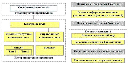 Программа, обнаружив соответствие, произведет замену ключевого поля на значение семантики или поля БД, столько раз, сколько раз оно присутствует в шаблоне. Все поля заполняются по принципу: сколько раз встретилось в документе, столько раз и заполнилось.