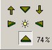 С помощью управляющих клавиш панели освещения можно установить следующие виды освещения модели: - треугольная стрелка – с севера; - треугольная стрелка – с юга; - треугольная стрелка – с запада; - треугольная стрелка – с востока; - жёлтый кружок «солнце» – из зенита (источник освещения находится над центром модели).