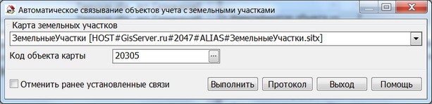 Диалог «Автоматическое связывание объектов учета с земельными участками»: